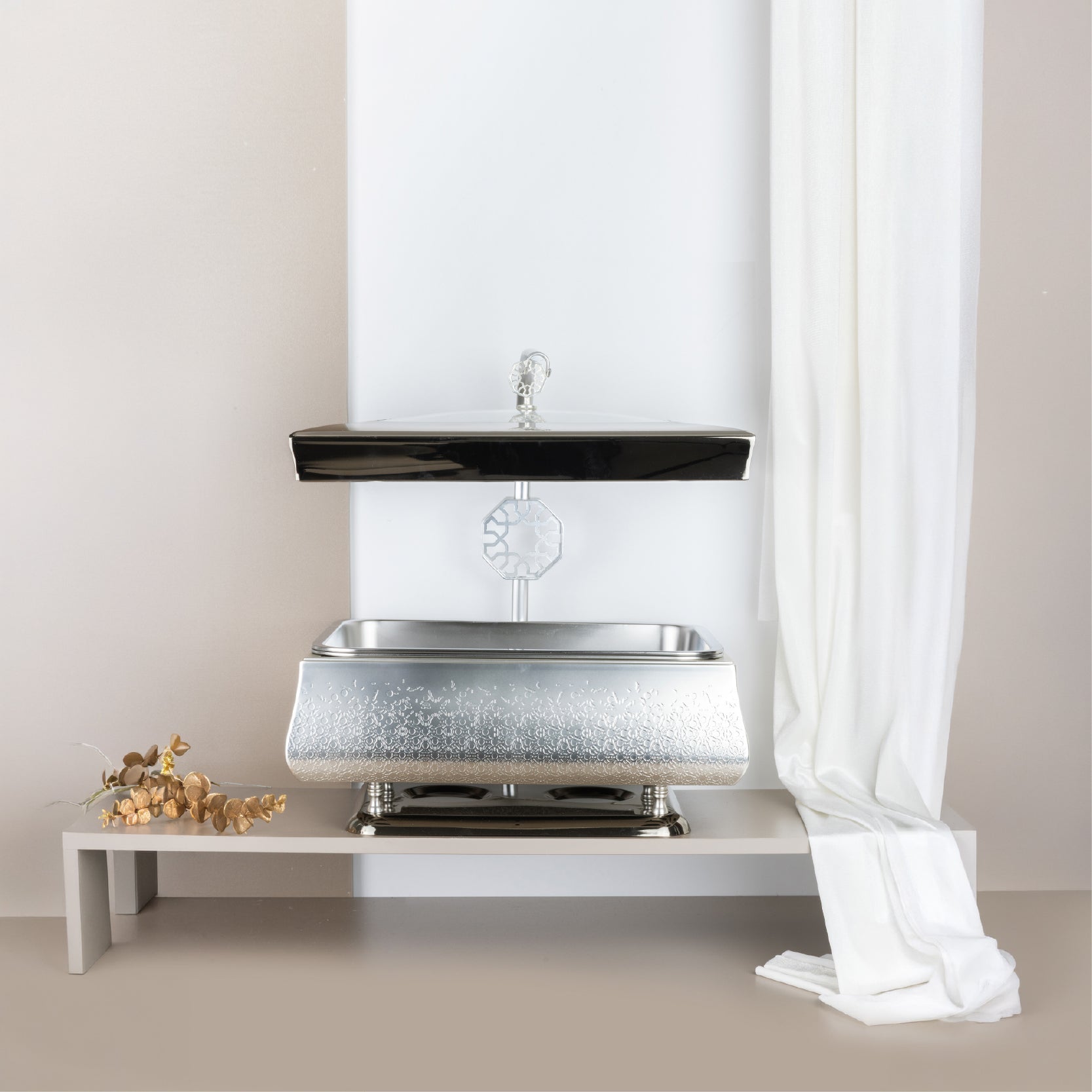بوفيه تقديم طعام 9 لتر معدني فاخر مع غطاء وحامل
