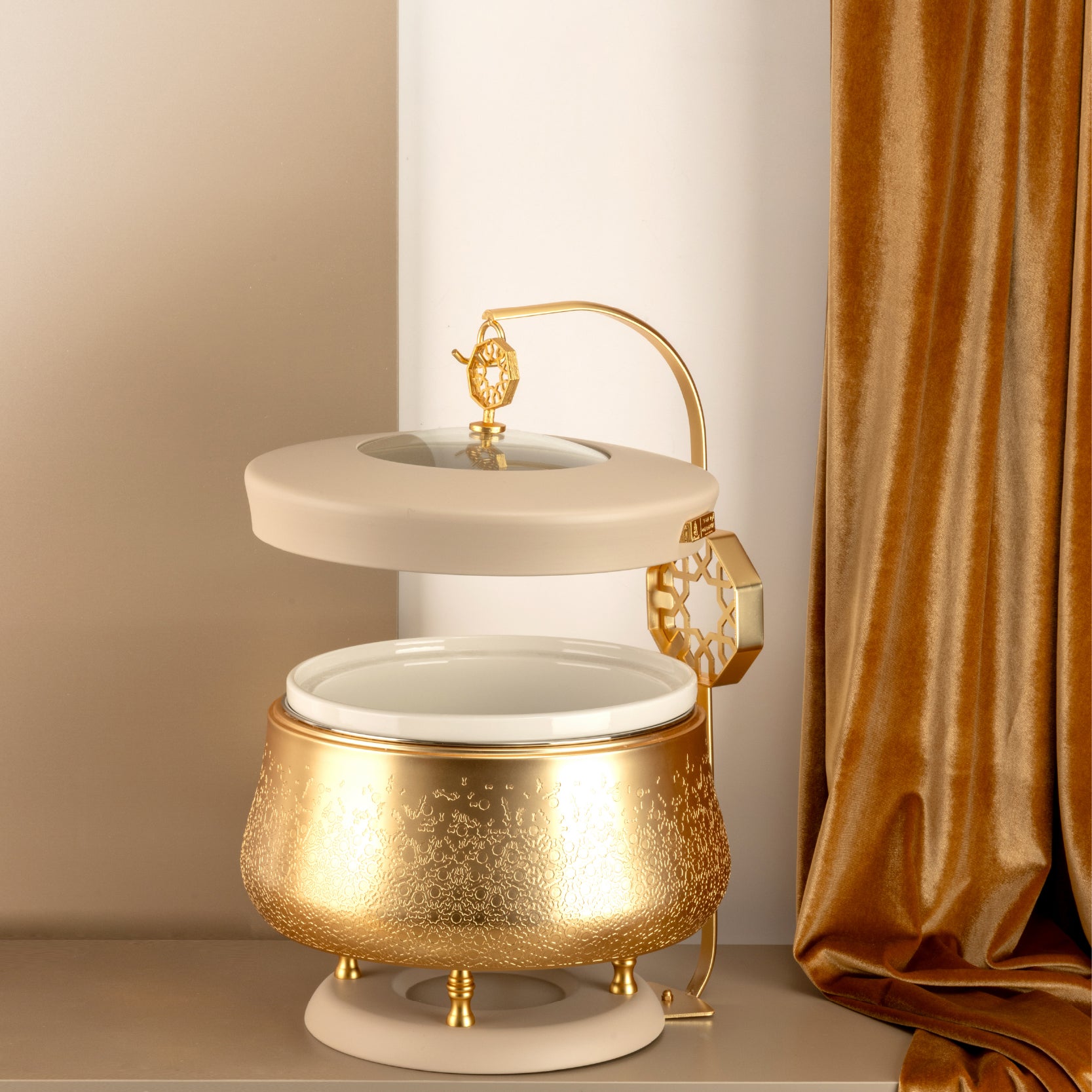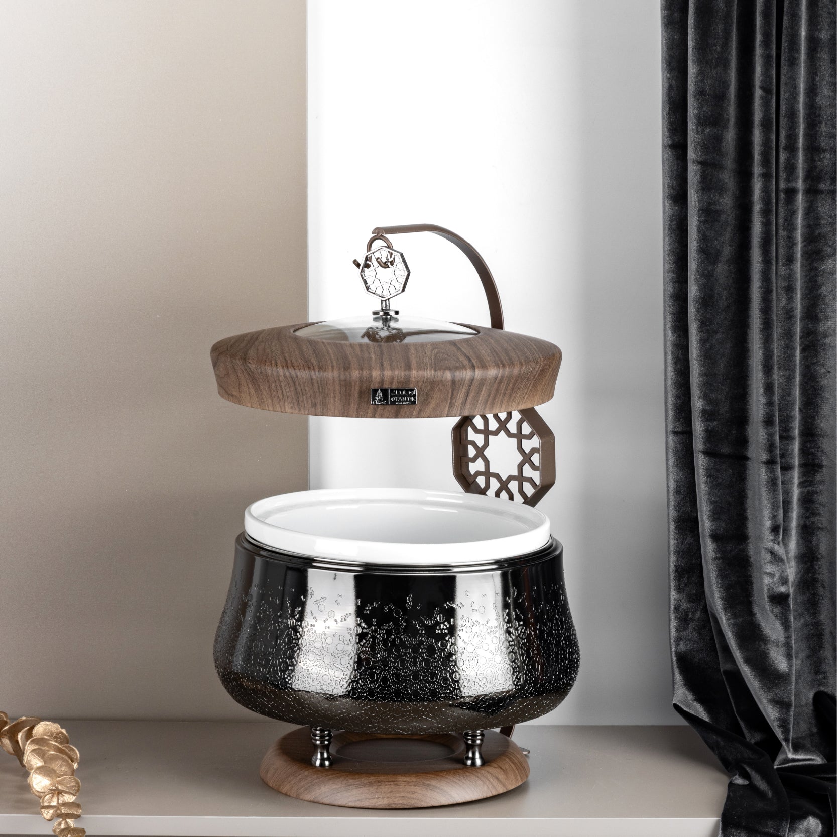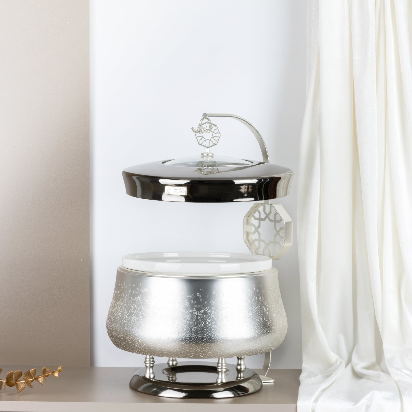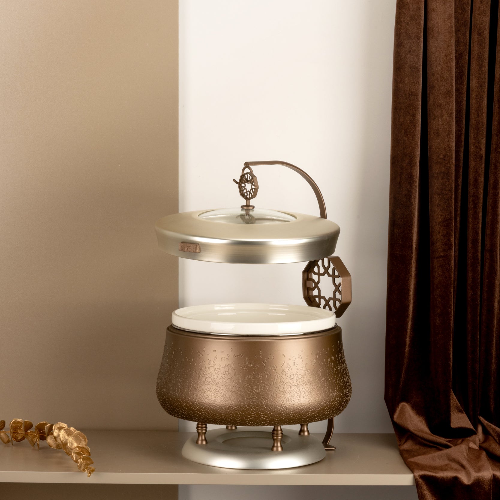 بوفيه تقديم طعام 4 لتر معدني فاخر مع غطاء وحامل