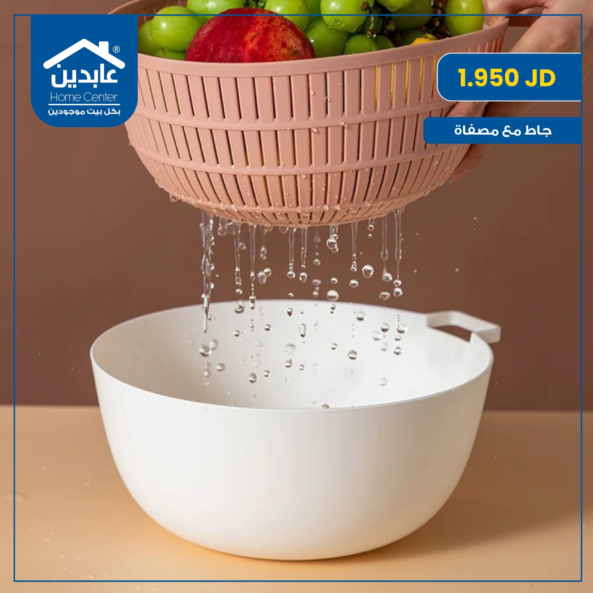 جاط بلاستيك مع مصفاة للخضار والفواكه متعدد الاستعمالات