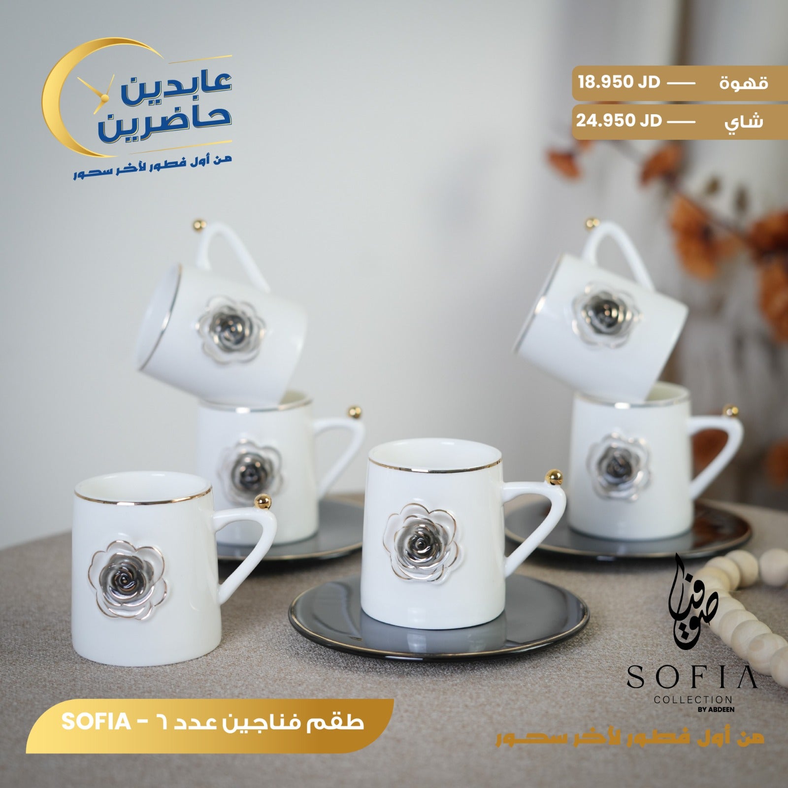 تقليل الكمية لـ طقم فناجين بورسلان SOFIA