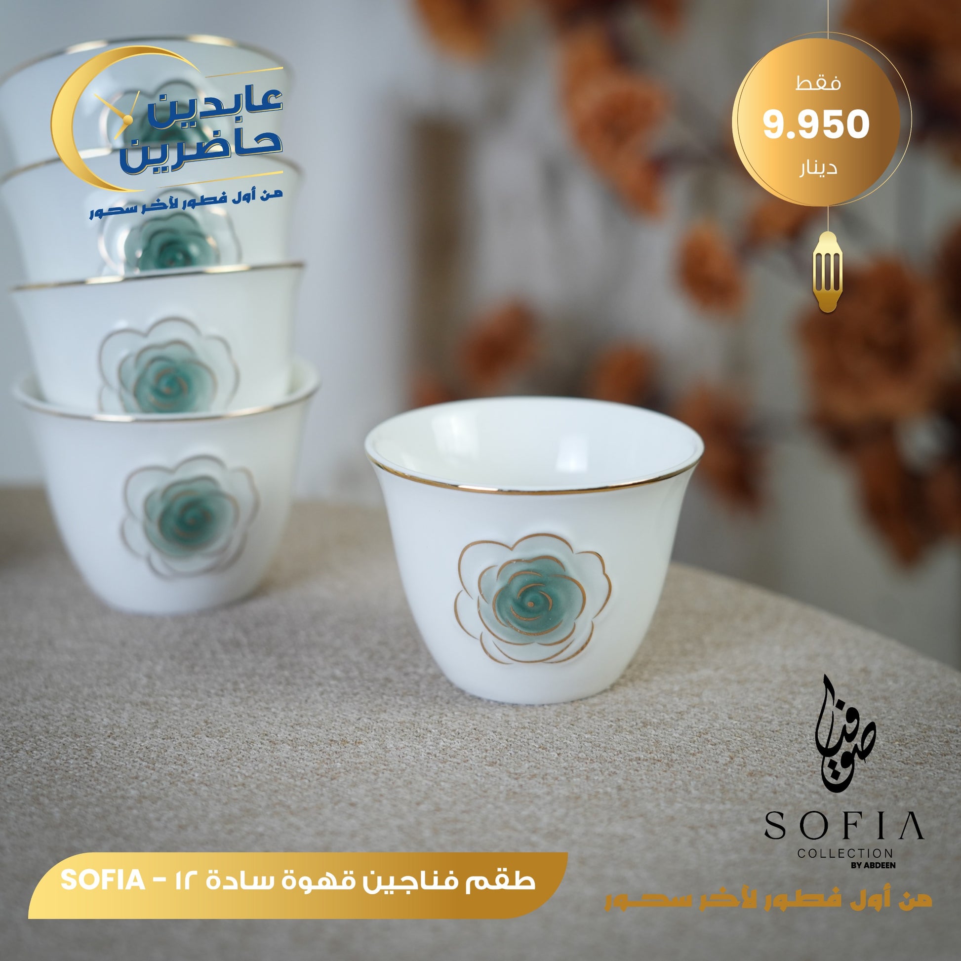 طقم فناجين قهوة سادة بورسلان فاخر رمضاني متوفر بعدة الوان عدد 12 SOFIA