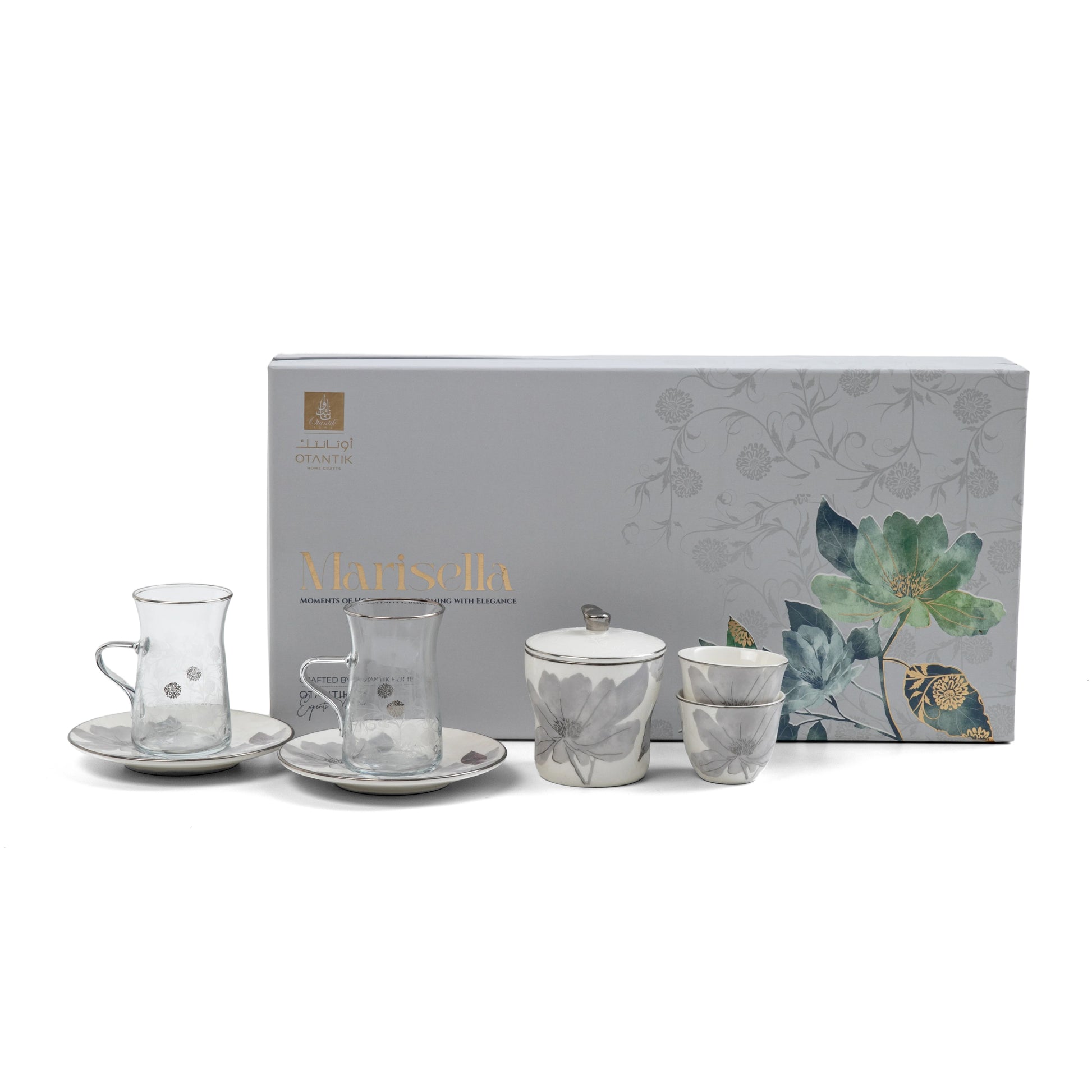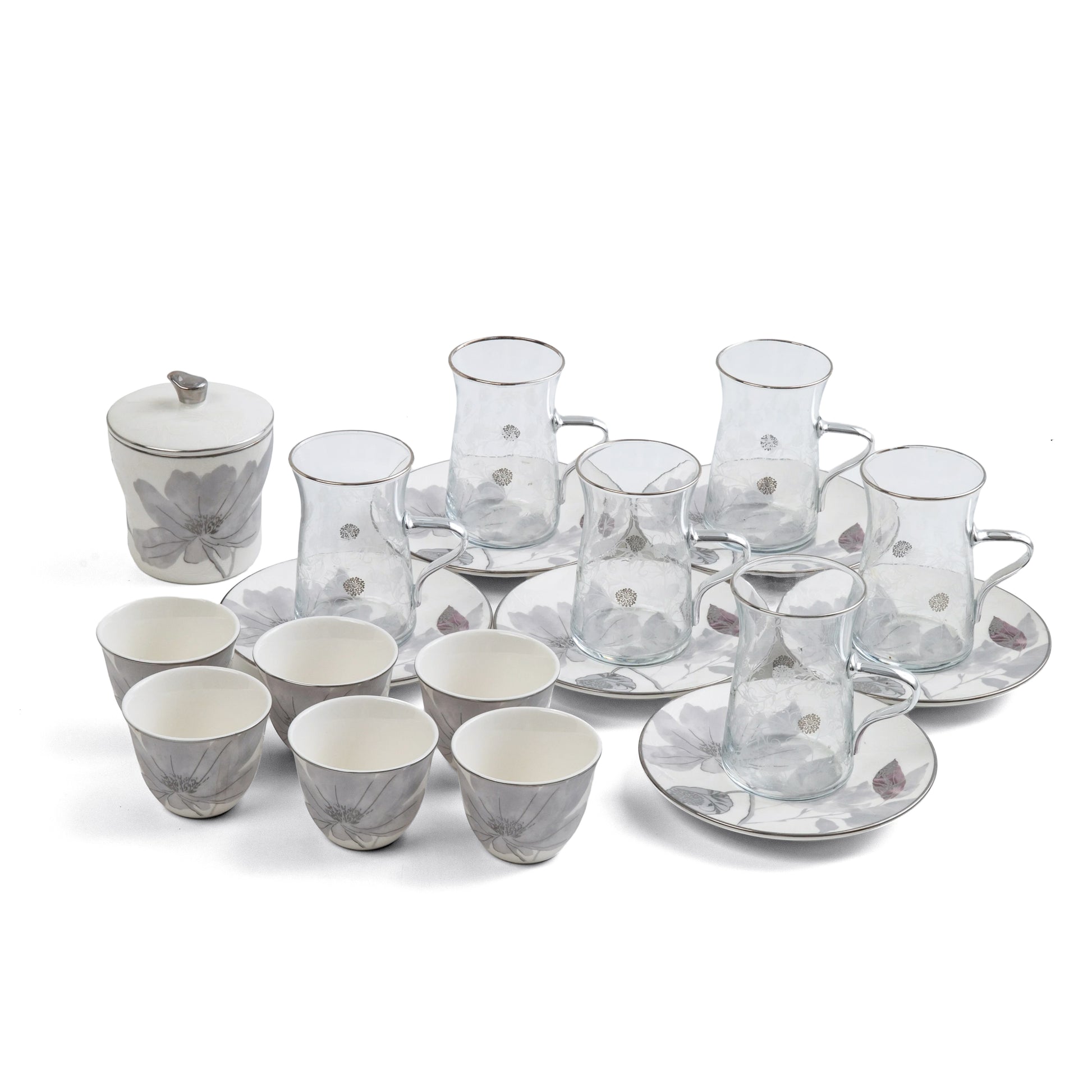 طقم أستكانات الشاي والقهوة العربية الفاخر مكون من 19 قطعة